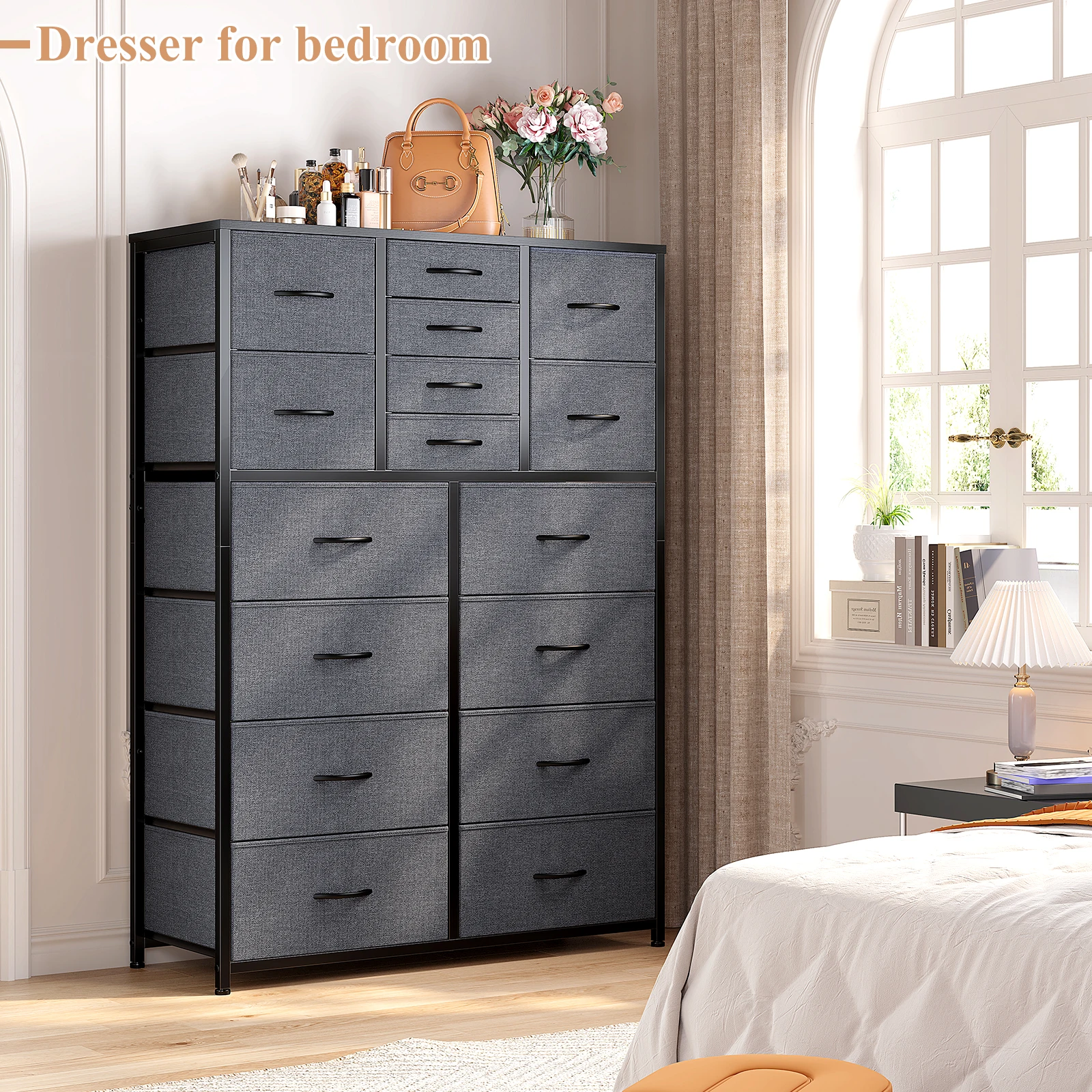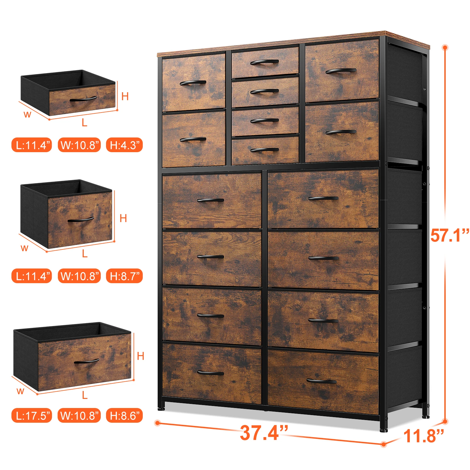 【16 FABRIC DRAWERS DRESSER FOR BEDROOM】 The size of this chest of drawers is 57.1 "X 37.4" W X 11.8 "D. 16 fabric drawers dresser not only takes up less space, but also provide enough storage space to store clothes, scarves, socks, T-shirts, pants, sunglasses and toys. Keep your room clean and tidy all the time.