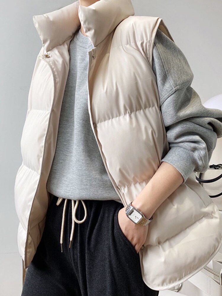 SHENGPALAE Fashion Contton Vest Women's 2023 Spring Stand Collar Single Breasted Sleeveless Loose Solid Color Waistcoat 5E4841
