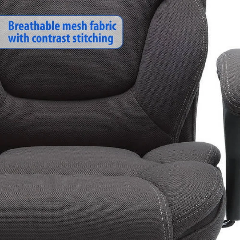 Serta Fabric Manager's Chair with Adjustable Height Big & Tall Has Arms, 300 lbs, Gray: