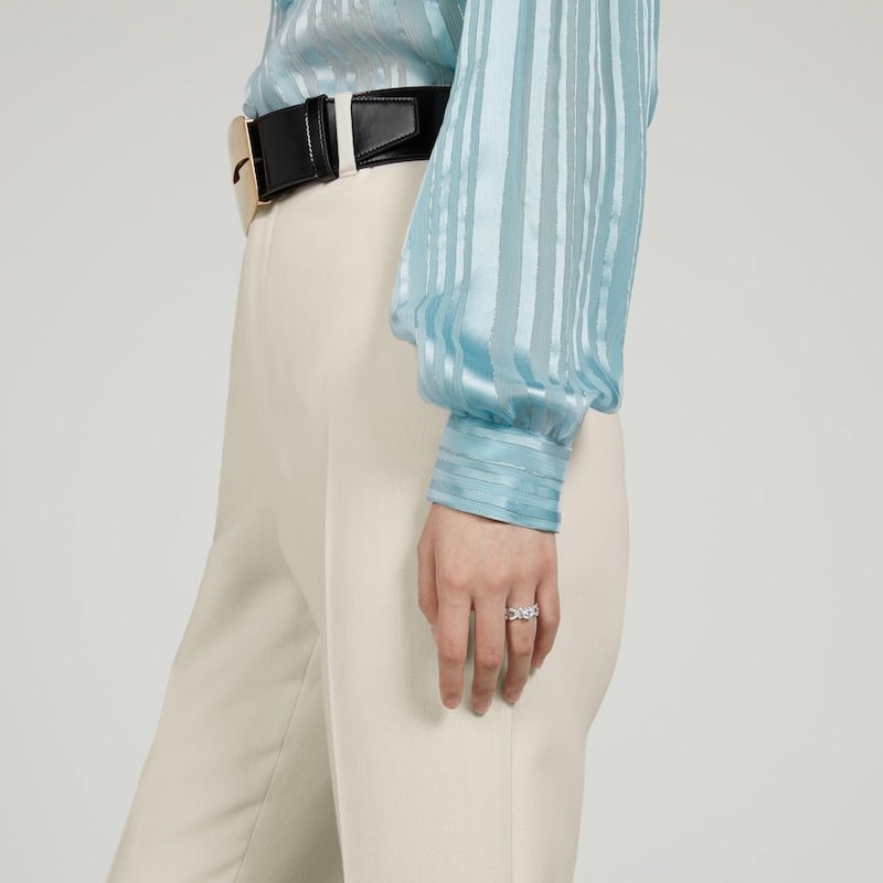 The Flora floral print was created by Italian painter Vittorio Accornero and appeared on the silk scarf designed for Princess Grace of Monaco in the 1960s. Since its inception, this jewelry series has continued to incorporate the femininity and chic charm of prints, interpreting them from a new perspective. This ring is made of white gold and features a solitaire diamond. The diamond-encrusted flower-inspired pattern pays homage to the origins of the collection's name. The brand's monogram pattern serves as an exquisite logo detail to highlight the brand's connotation in a low-key manner.