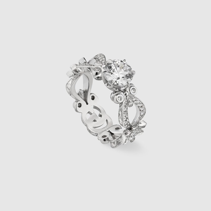 Gucci Flora 18k white gold solitaire ring